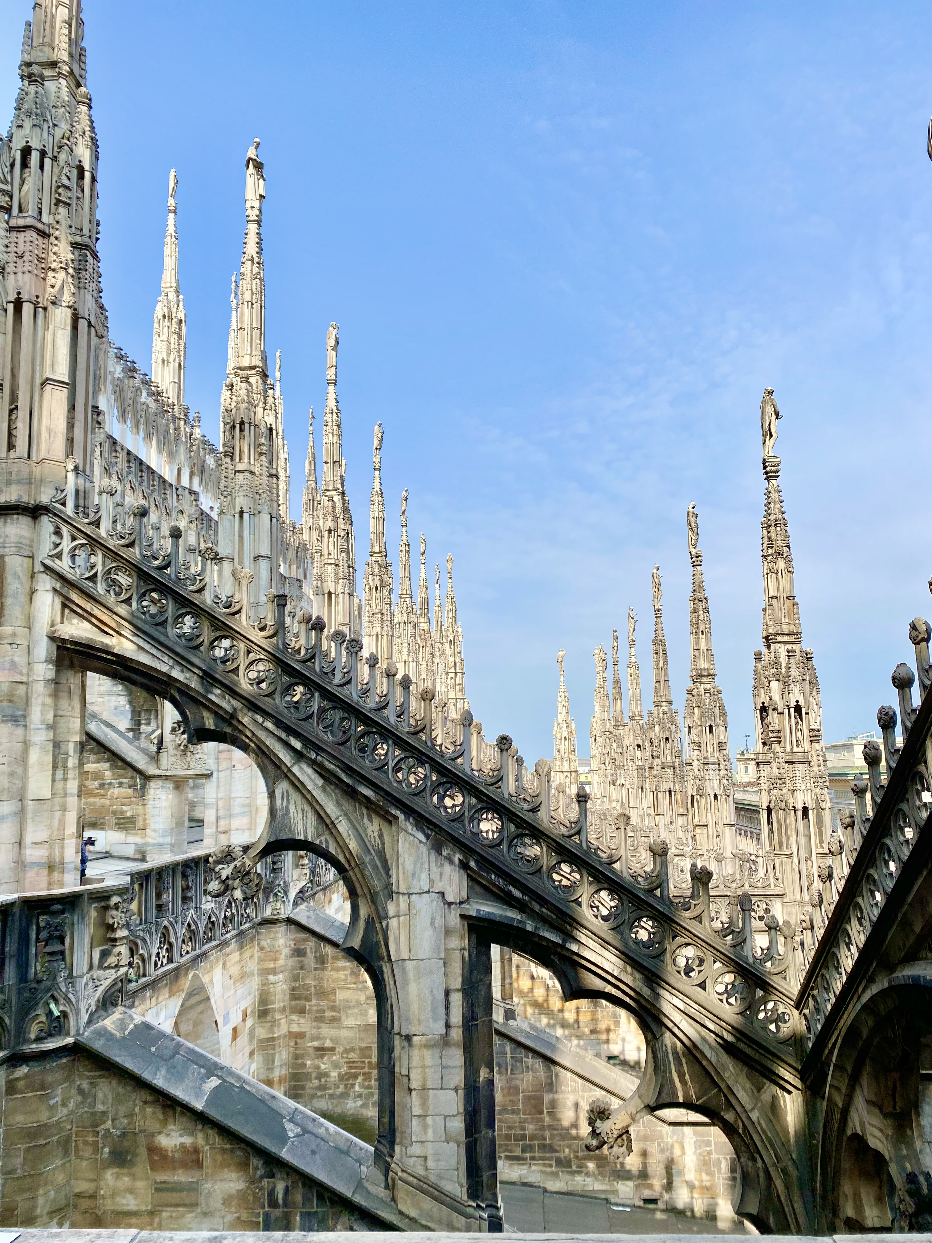 - Cathédrale El duomo, l’une des plus grandes Cathédrales. Sa construction a duré plus de 600 ans, les détails sont époustouflants. Je conseille fortement de monter sur les terrasses de la cathédrale, soit par les escaliers ou l’ascenseur.