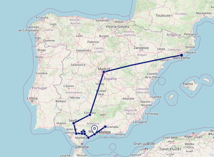 Nous profitons de la matinée pour érrer dans les ruelles de Marbella avant de reprendre la route en début d’après-midi.