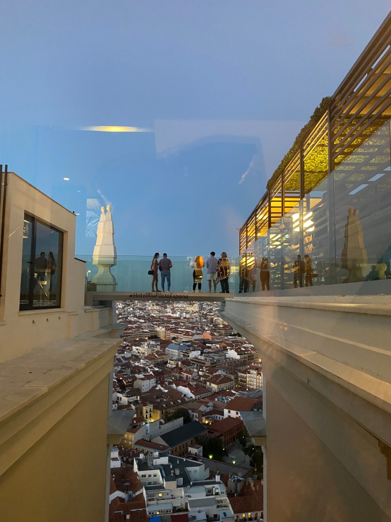 - Rooftop : 360° rooftop bar, qui aura le courage de passer sur la passerelle en verre ? Idéal pour une vue au coucher de soleil et voir Madrid by night mais prévoir de l’attente à l’entrée. (Nous avons attendu 1h30).