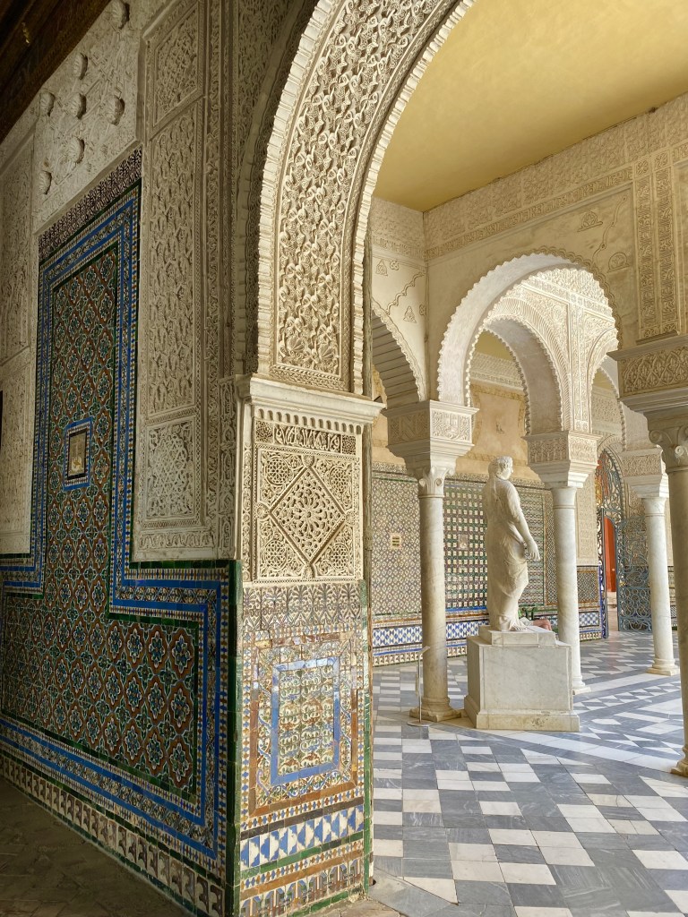 - Palais + jardins de l’Alcaraz, un incontournable de Séville. Visite à fair absolument, ma favorite du séjour. L’entrée coûte 14,5€, il faut réserver en ligne en avance. Il faut prévoir quelques heures de visites (2h/3h) pour contempler ce bijoux. Tout est absolument splendide, vous aurez sûrement la chance de voir des paons dans les jardins du palais.