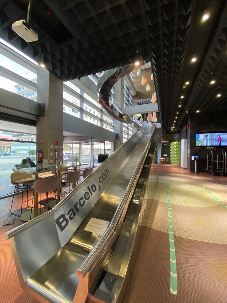 – Le toboggan était fermé à cause du Covid (oui oui, il y a un toboggan pour descendre du 1er au rez-de- chaussée)