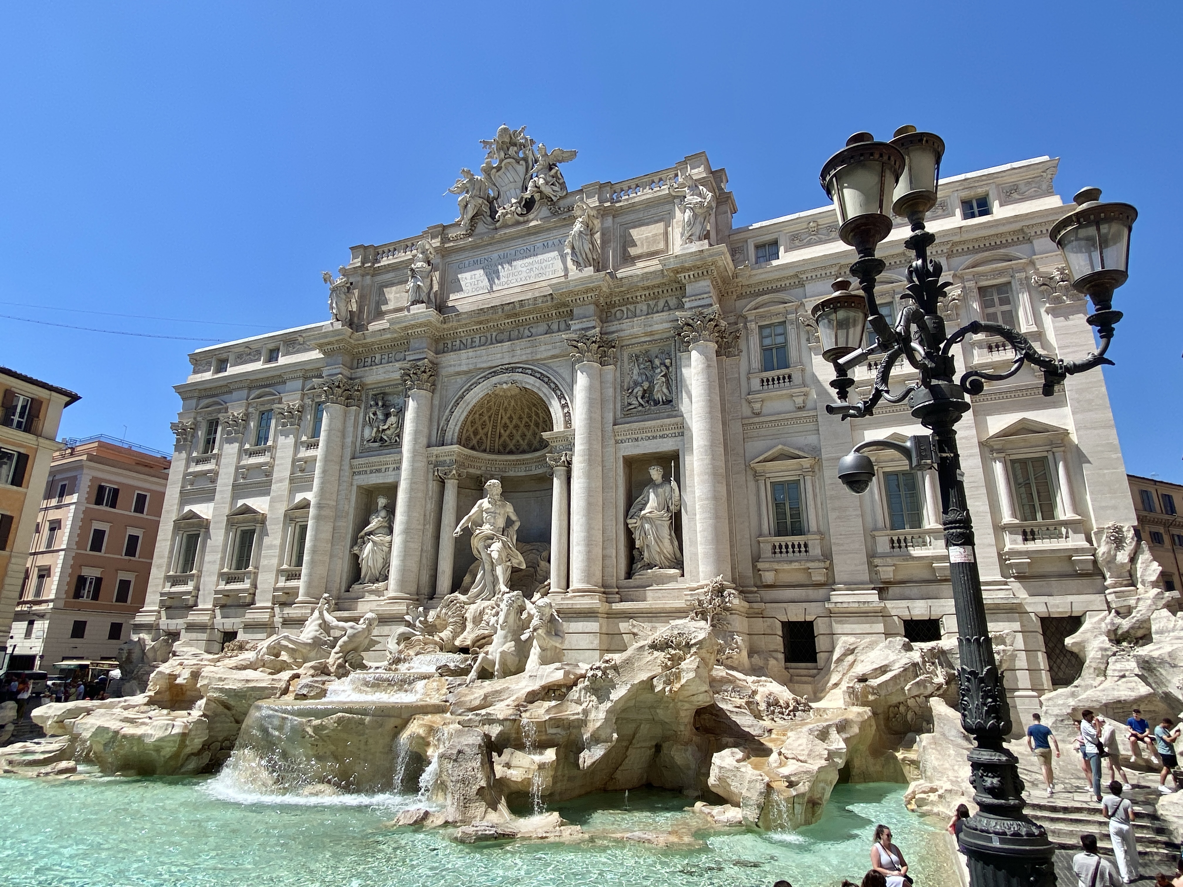 - La Fontaine de Trevi, un des monuments historiques qui attire le plus de monde. Enormément de touristes du matin au soir, le mieux pour être seul est de venir au levé du jour à 7h. Elle a un charme différent en journée et en soirée. Une fontaine spectaculaire située en plein coeur de la ville, avec des sculptures impressionnantes. Selon la coutume, il faut jeter une pièce par dessus son épaule gauche, tout en lui tournant le dos et en fermant les yeux pour que le voeu soit exhaussé.