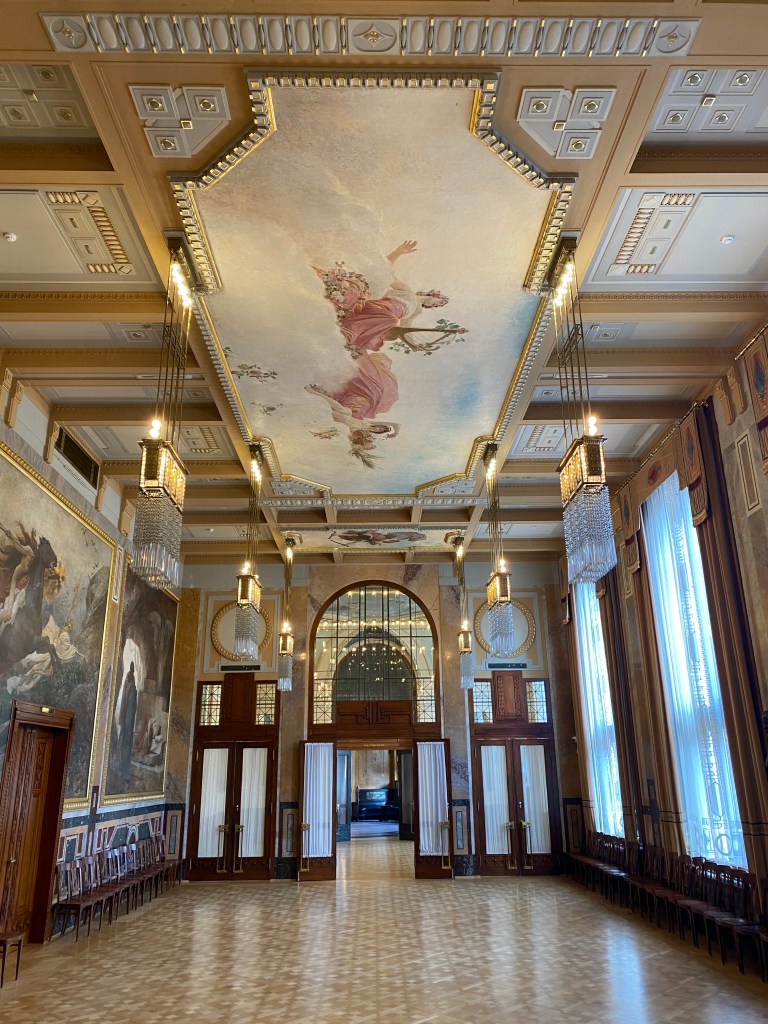 - Maison de la Municipalité, également une de mes visites favorites. Elle dure environ 1h30 et coûte 12€63. Elle permet de voir la célèbre salle de spectacle et ses nombreux autres salons du style art nouveau. La visite est en anglais mais un document en français nous a été prêté. L’architecture de ce lieu est époustouflante. Visite à réserver à l’avance.